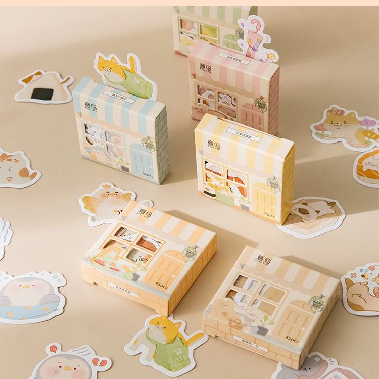 Set 45 nhãn dán Suuuny xinh xắn trang trí nhật ký free ship